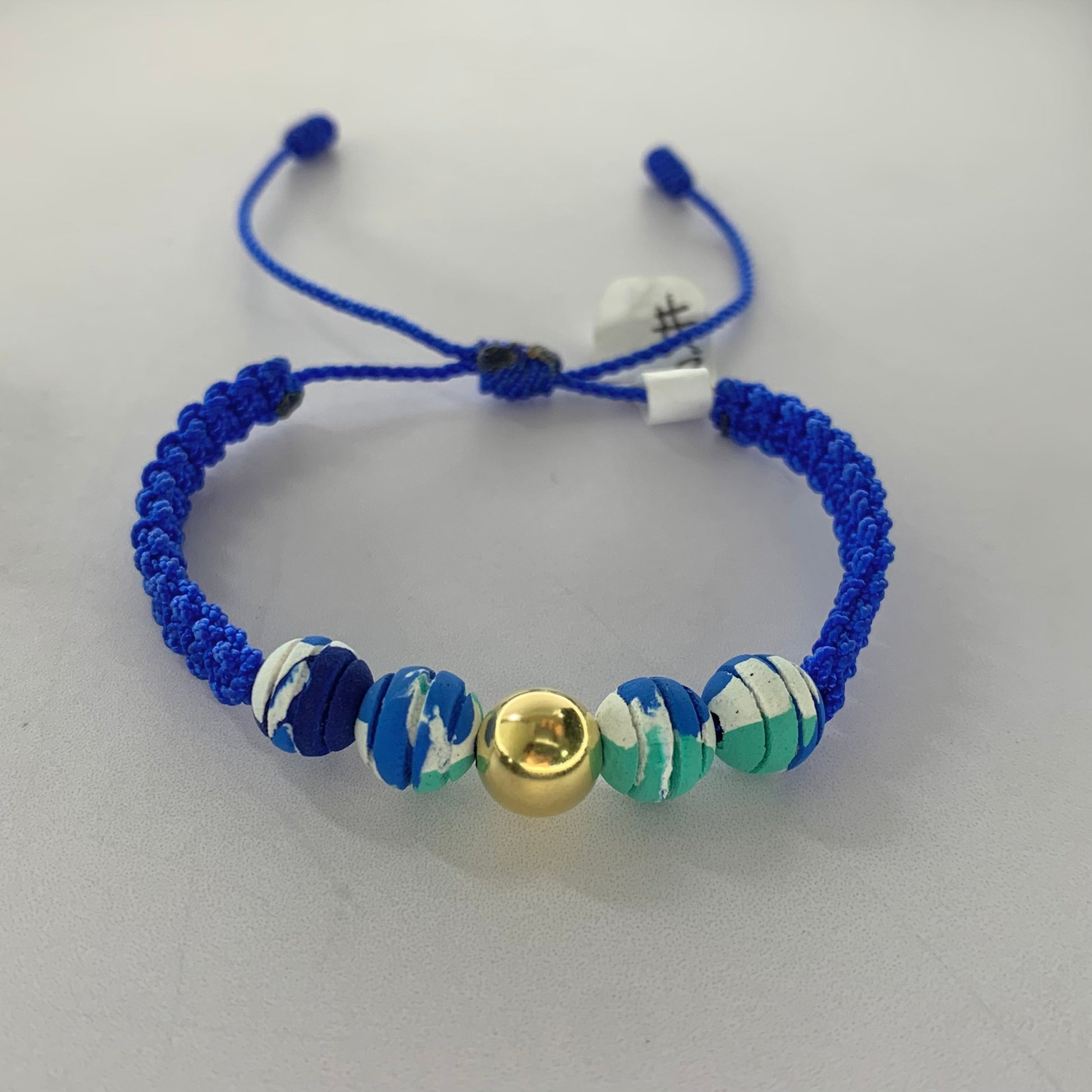 Pulsera Bola Lisa 8Mm Neopreno Azul 0.33Gr Oro Amarillo L720 18K