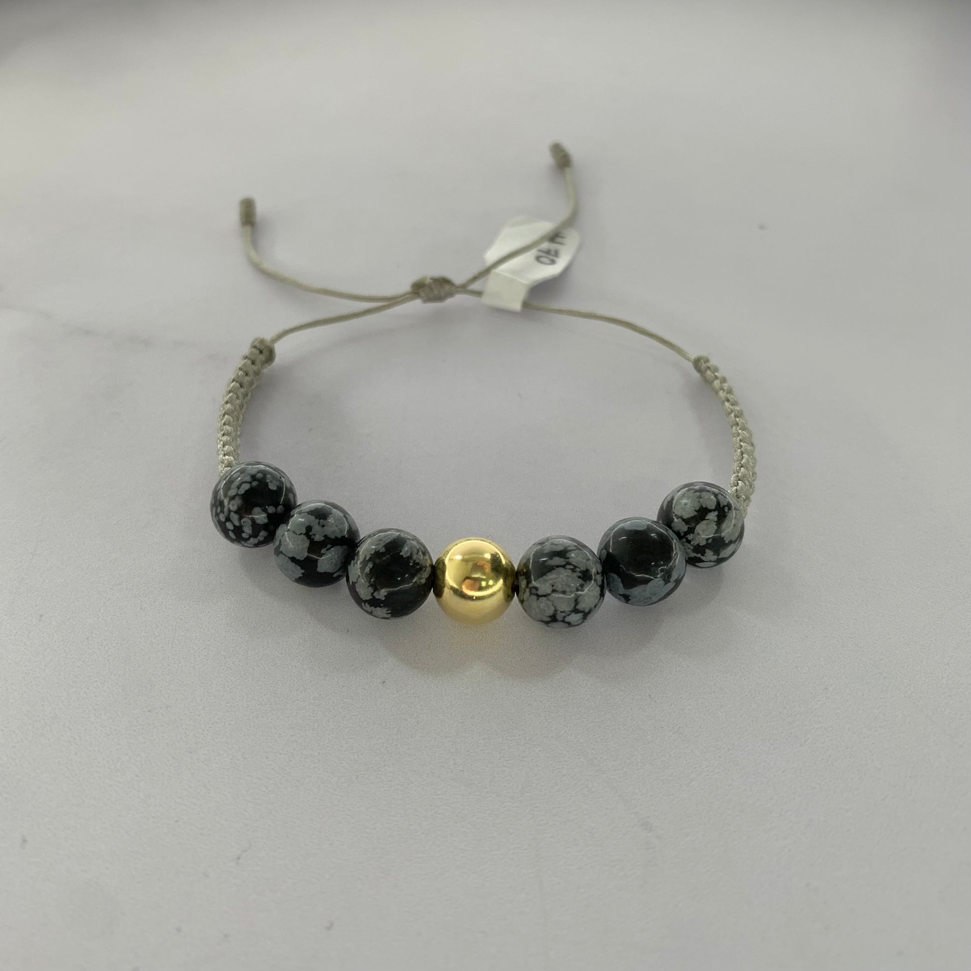 Pulsera Bola Lisa 8Mm Piedra Negra Y Gris 0.33Gr Oro Amarillo L720 18K