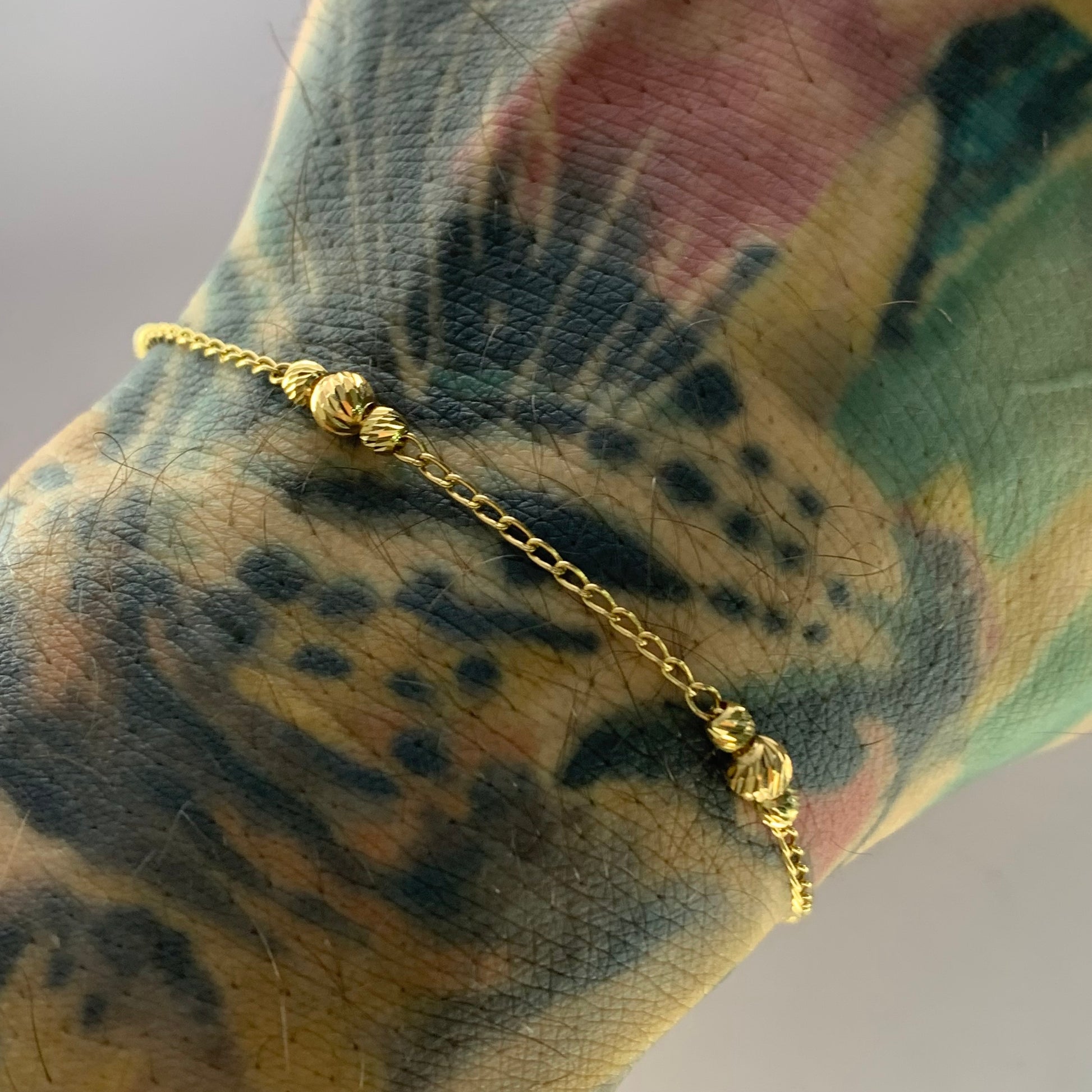 Pulso Balines Diamantados 2.18Gr / 18.5Cm / 4Mm Y 3Mm Oro Amarillo L720 18K