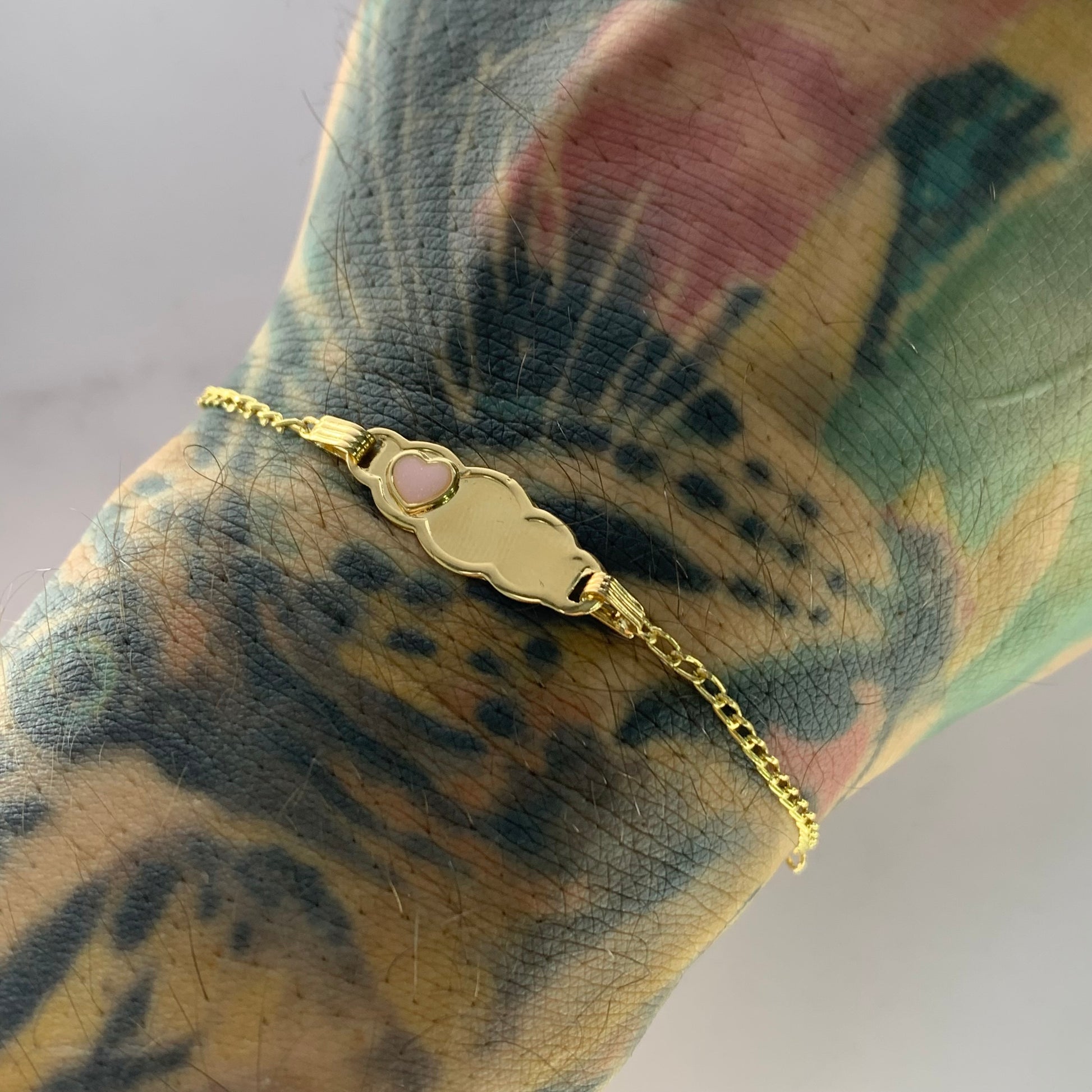 Pulso Bebé Placa Nube 1.67Gr / 14Cm / 1.6Mm Corazón Palo E Rosa Oro Amarillo L720 18K