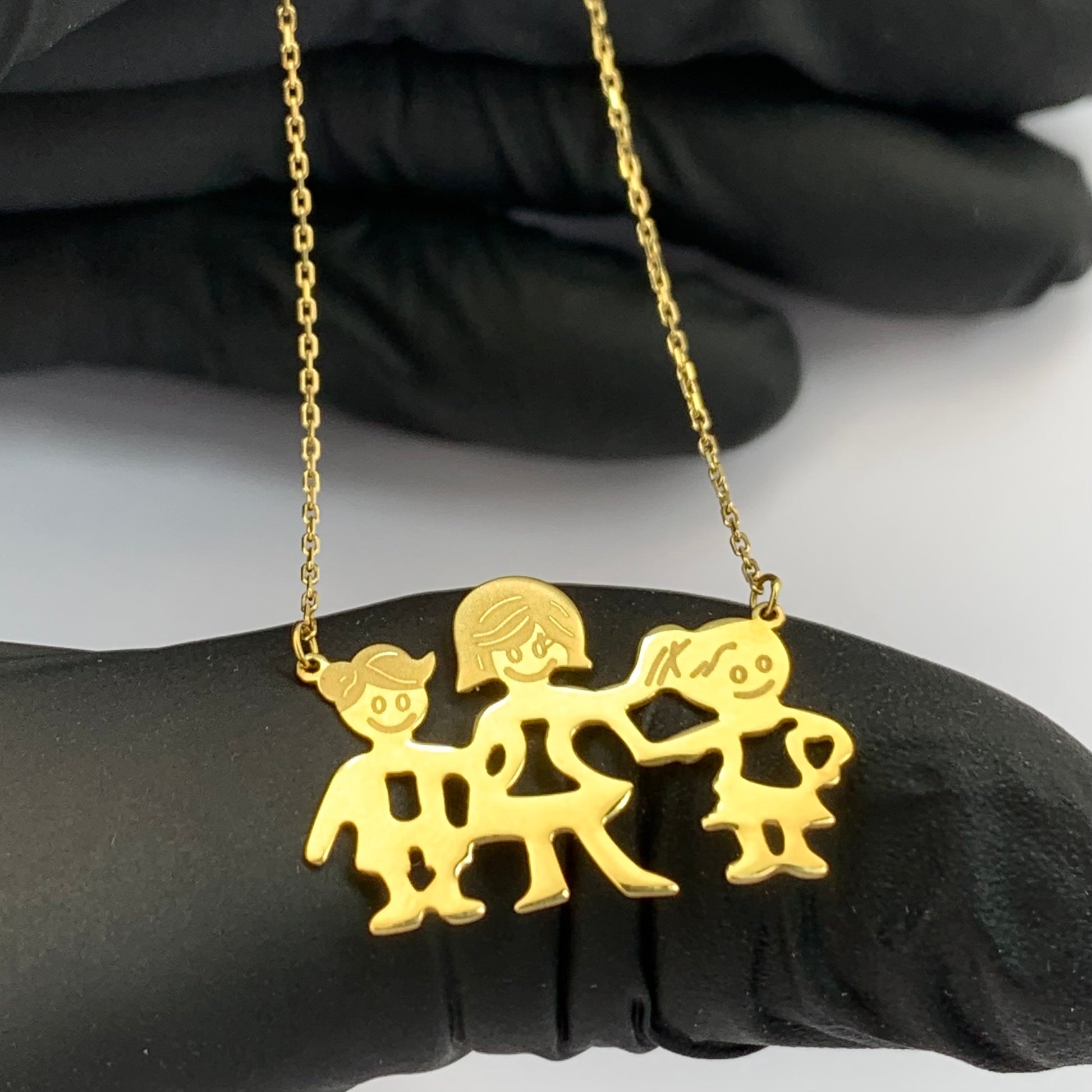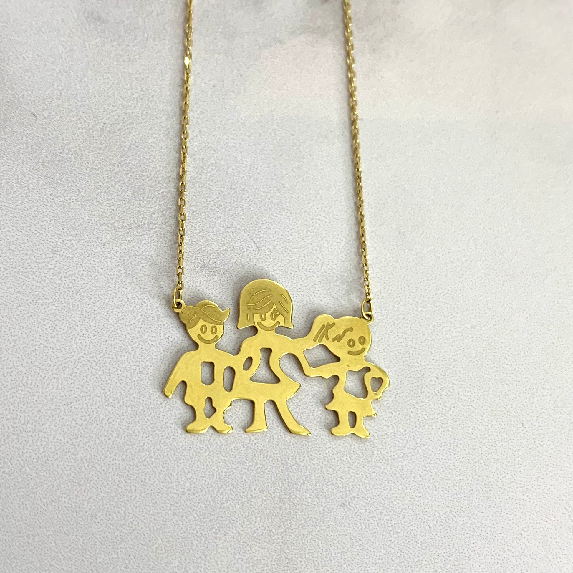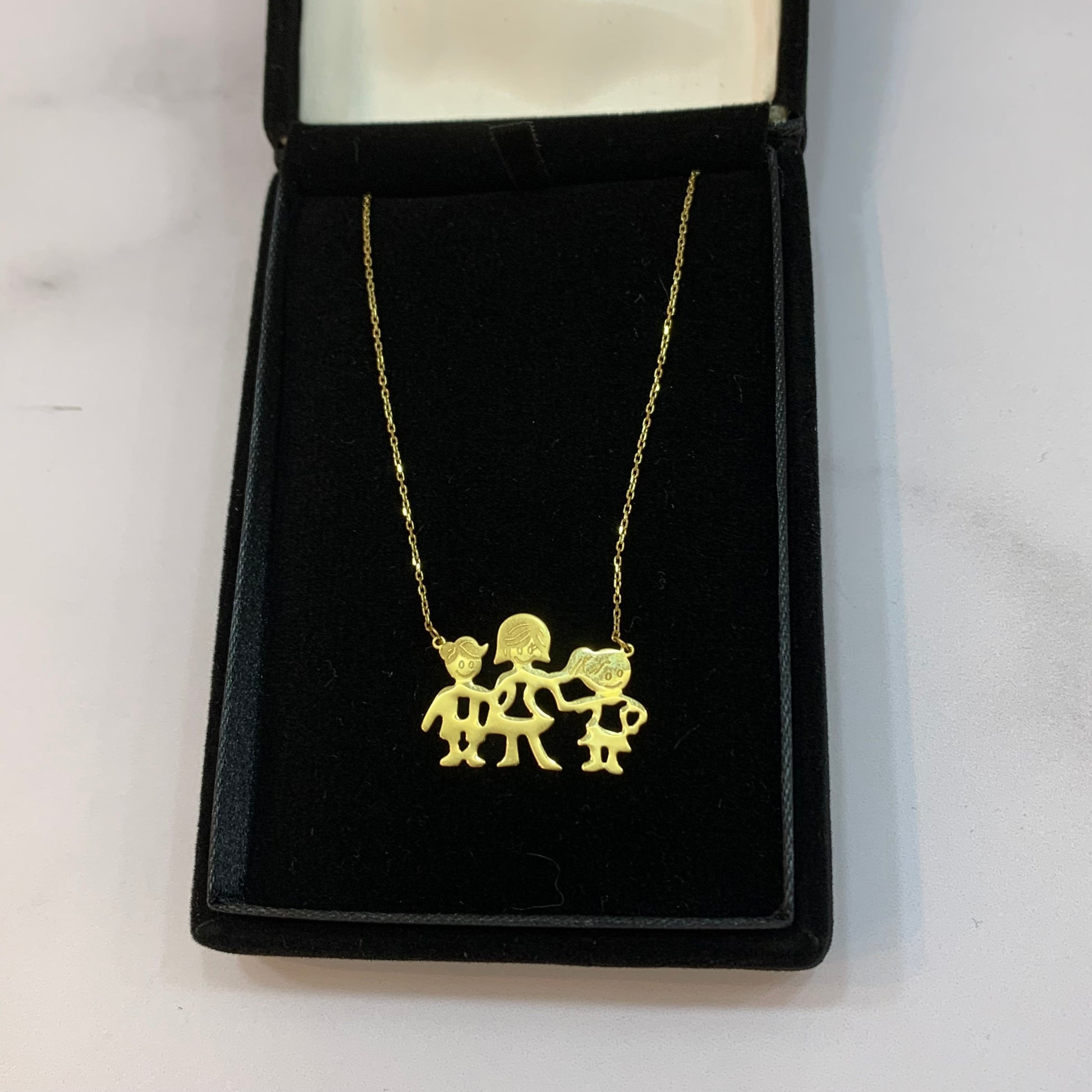 Set Cadena Y Dije Familia 2.15Gr / 42Cm / 0.6Mm Niño Mama Niña Oro Amarillo L720 18K